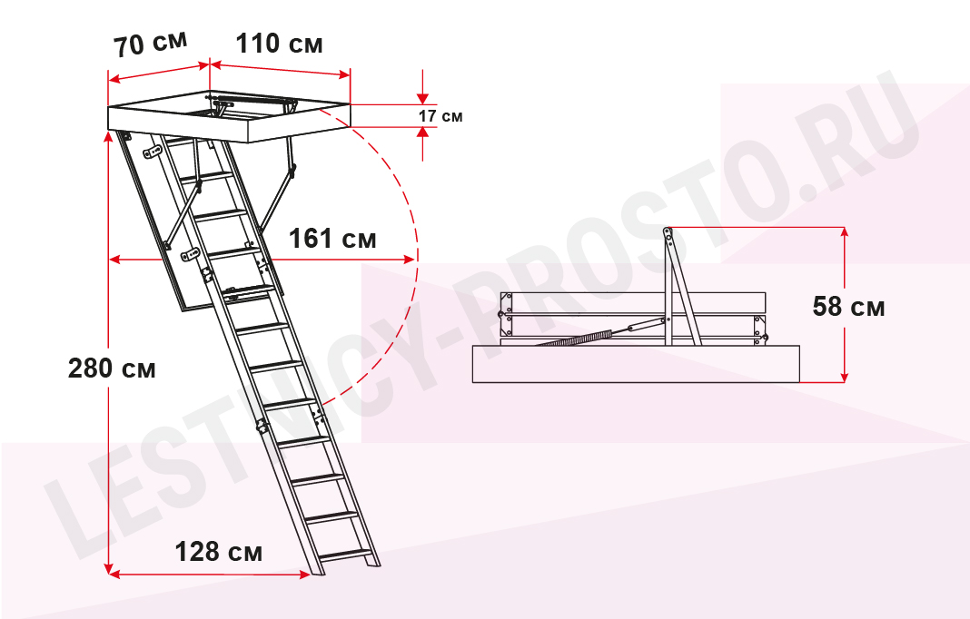 Чердачная лестница OMAN Alu-Profi 70×110 см, h-280 см