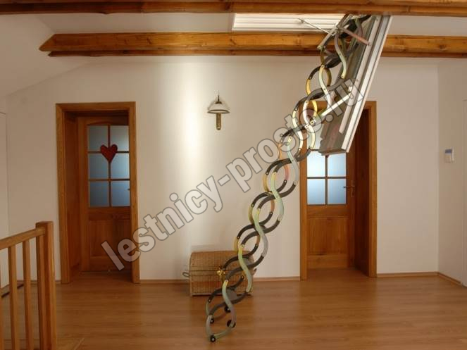 Лестница чердачная, раздвижная, ножничного типа.