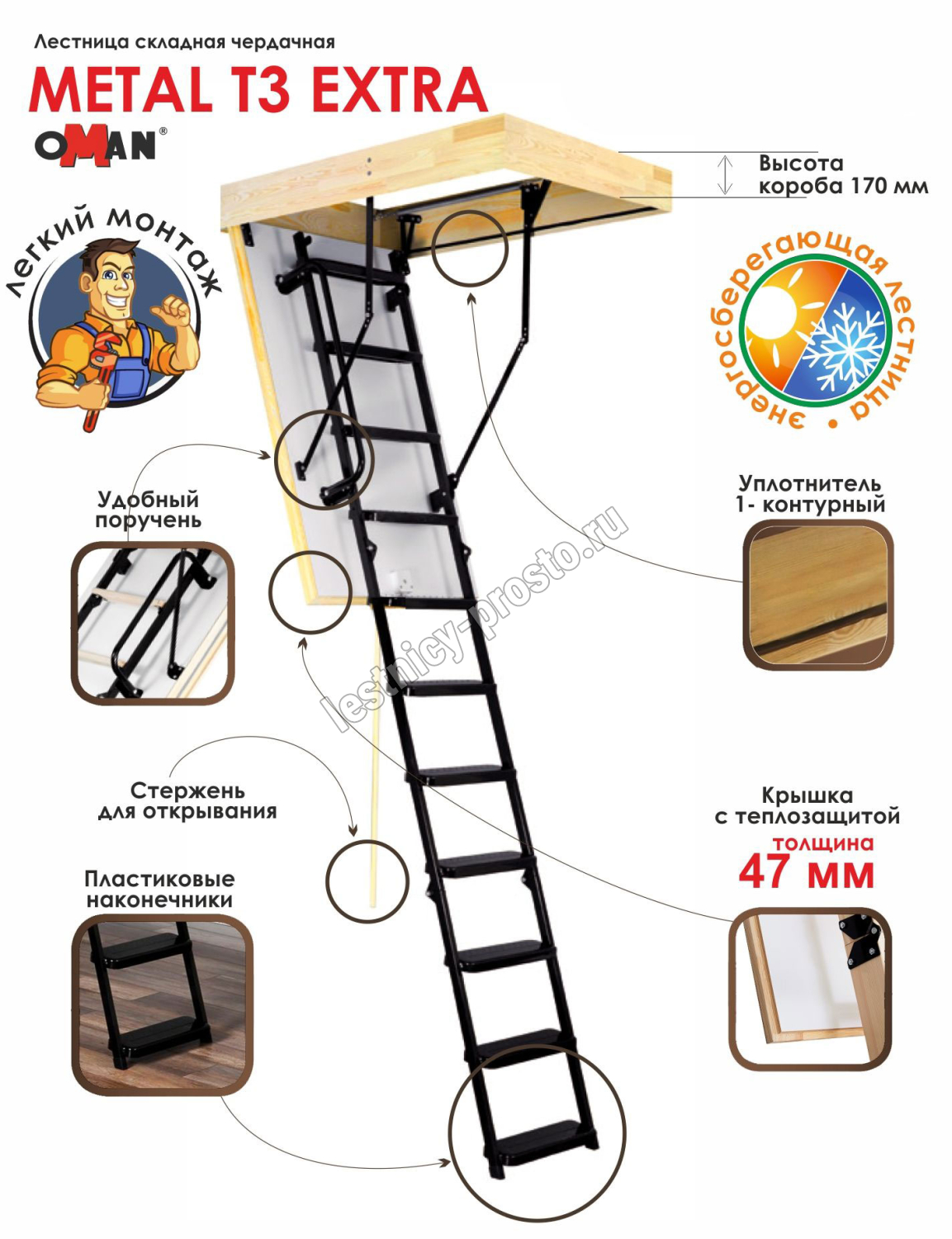 Лестница OMAN Metal T3 EXTRA 55×120 см, h-280 см