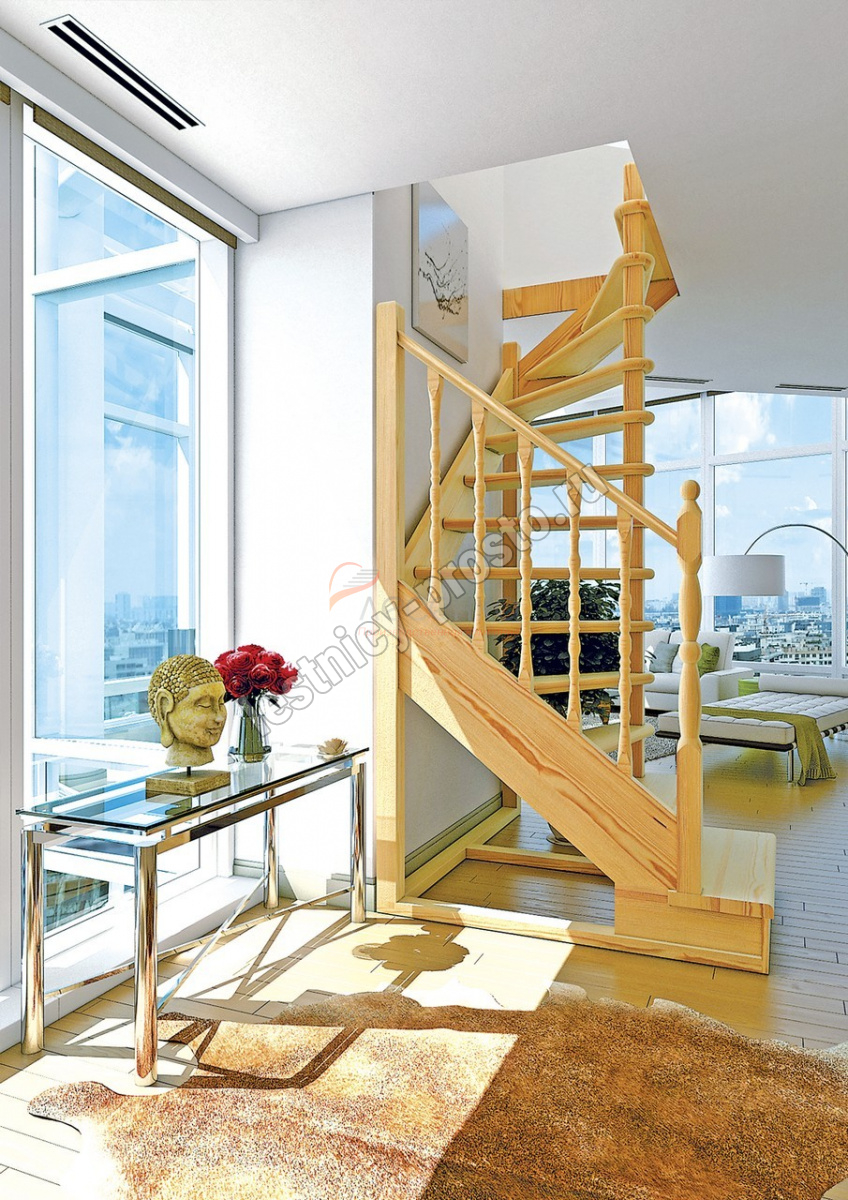 Деревянная межэтажная лестница ЛЕС-03 2915-3075 проем 1630-1120, Сосна