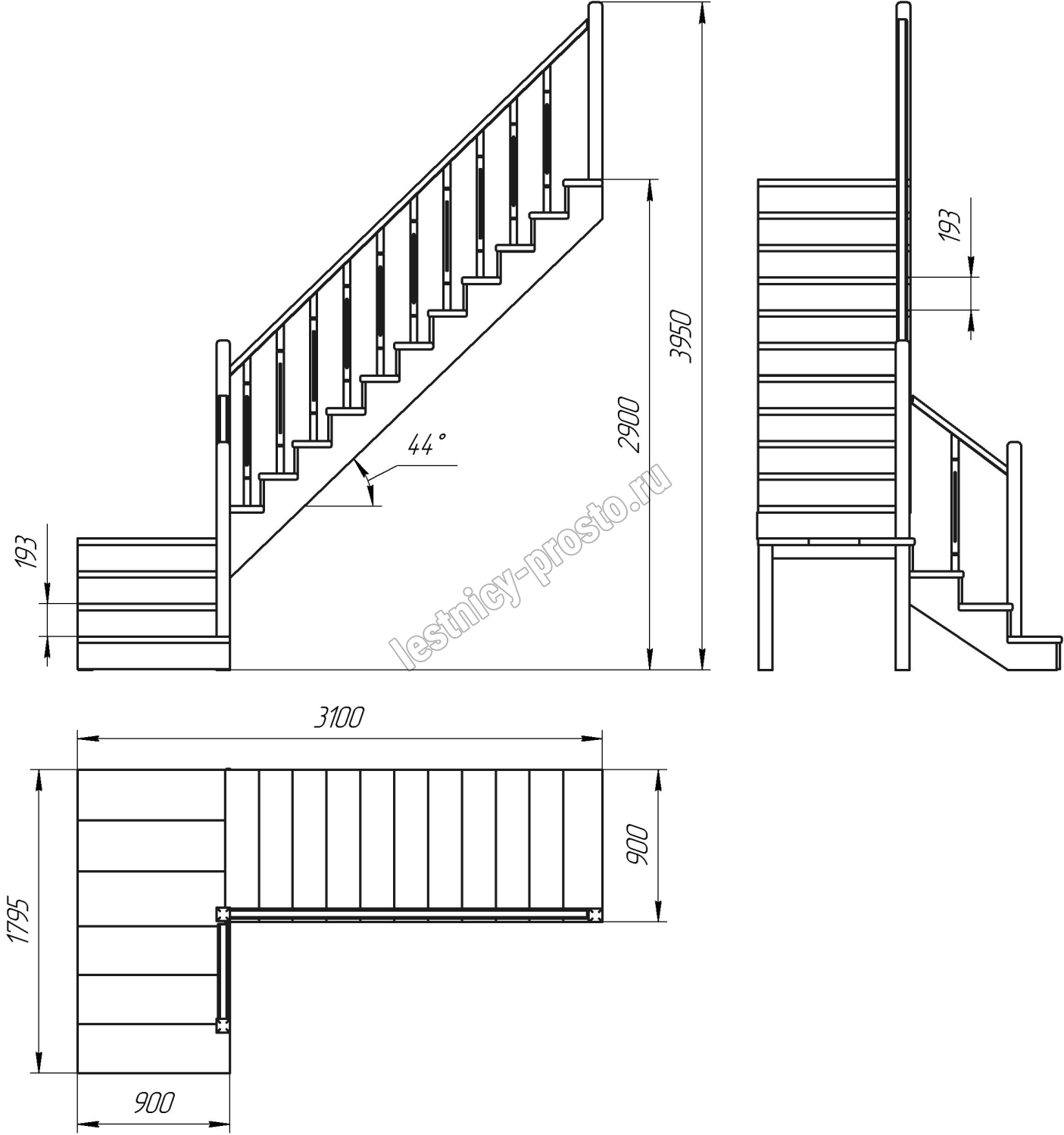 Универсальная лестница, имеющая в основе своей конструкции наклонную опорную балку. Легко впишется в любой интерьер, даже на неровном полу. Место под площадкой можно закрыть и использовать для хранения различных предметов. Монтаж осуществляется силами двух человек на объекте по указаниям, приведенным в паспорте на лестницу.