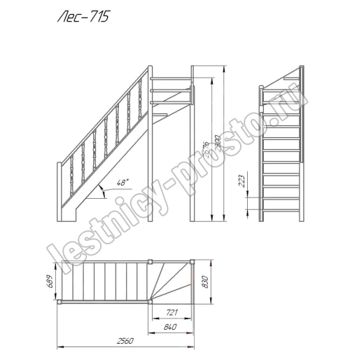 Деревянная межэтажная лестница Лес-715, Лиственница