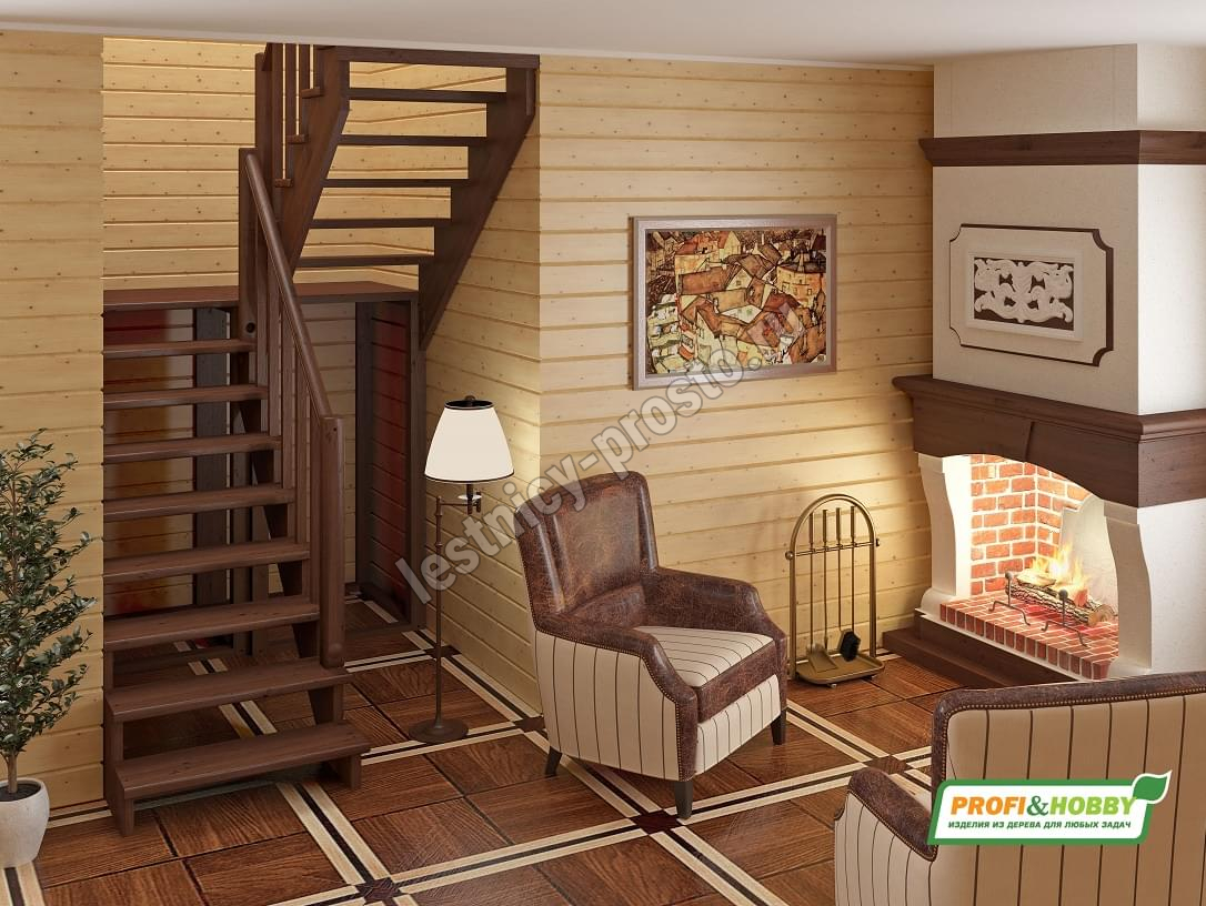 | Лестница из сосны К-004М/2 с подступёнками под покраску |