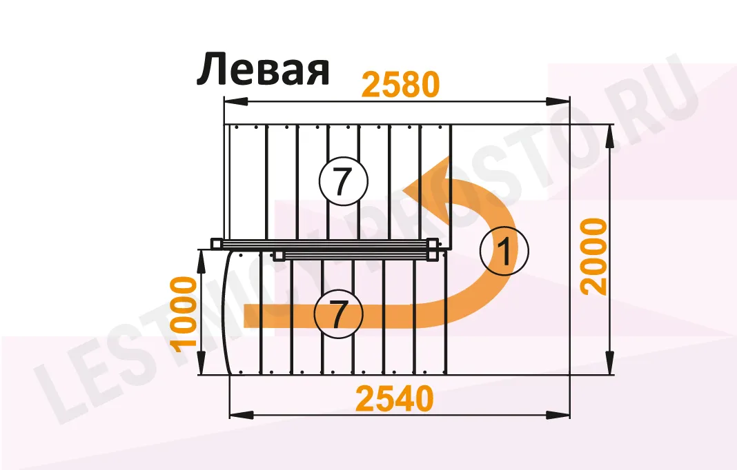 Схема лестницы К-104М с поворотом налево