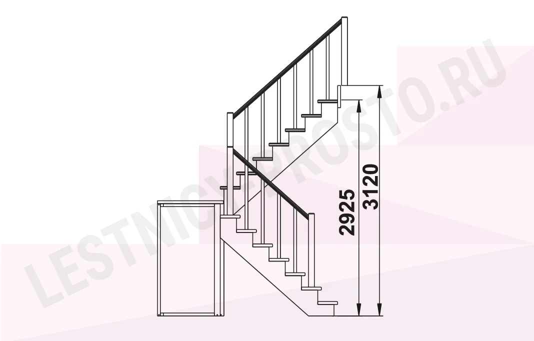 Высота лестницы 2925 - 3120 мм