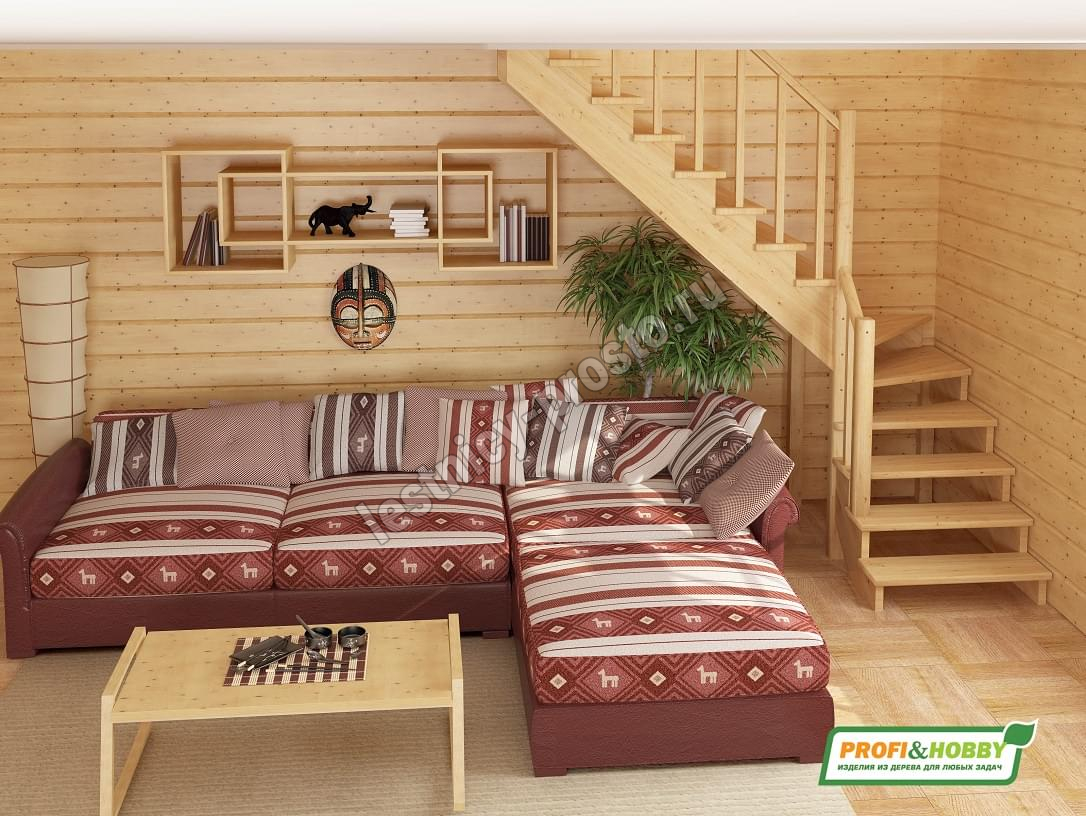 Ступени и поручень лестницы изготовлены из дуба, остальные элементы из сосны.