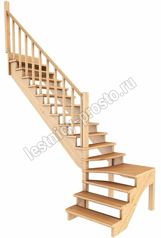 Базовый комплект включает в себя деревянные элементы лестницы и ограждения без какого-либо покрытия.