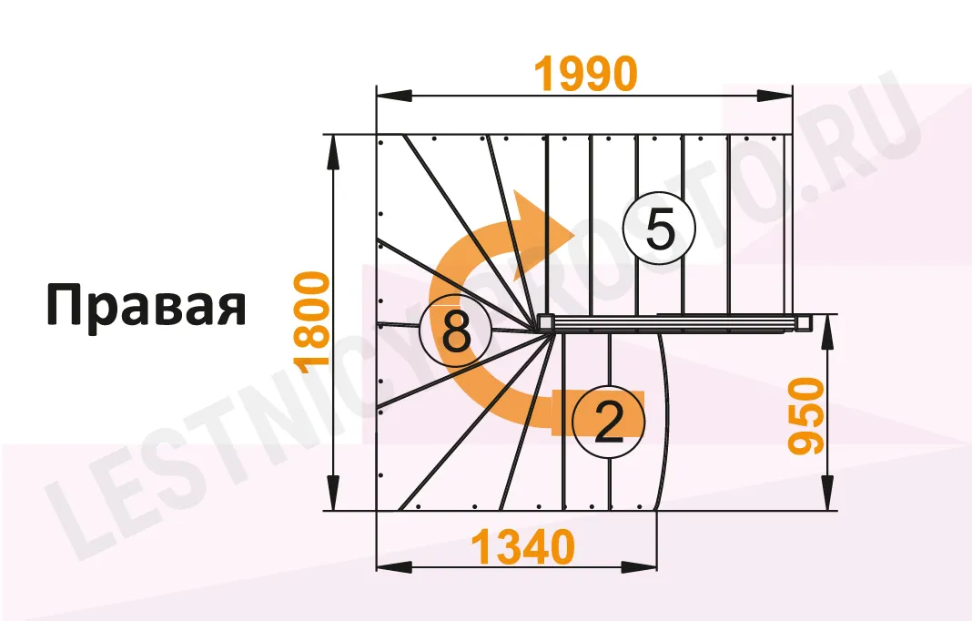 Схема лестницы К-003М/4 с поворотом направо