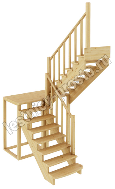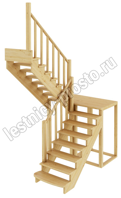 Базовый комплект включает в себя деревянные элементы лестницы и ограждения без какого-либо покрытия.