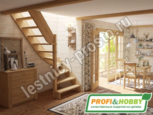 Базовый комплект включает в себя деревянные элементы лестницы без какого-либо покрытия.