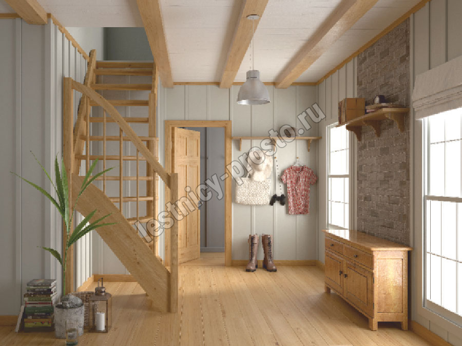 Ступени и поручень лестницы изготовлены из ясень, остальные элементы из сосны.