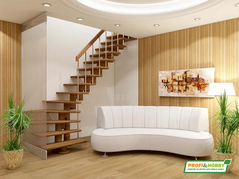 Надёжная современная лестница выполнена по немецкой технологии. Стоимость указана для лестницы с ограждением (с одной стороны); Поставляется в разобранном виде, в комплекте необходимый крепёж; Лестницу можно собрать самостоятельно; Так же, вы можете заказать услугу монтажа нашими специалистами; 4 вида породы дерева для изготовления лестницы: сосна, бук, ясень, дуб; возможна комбинированная лестница: из сосны (ступени бук, ясень, дуб); Деревянные элементы без какого-либо покрытия, отшлифованы, готовы к покраске. За дополнительную плату, вы можете изменить любые параметры, а именно: увеличить глубину ступени; увеличить ширину марша до 900 мм. и выше; заказать подступенки к лестнице; заказать отделку перекрытия (между 1-м и 2-м этажами); изготовить дополнительный промежуточный марш; заказать ограждение 2-го этажа; покраска в любой цвет или несколько цветов или покрытие защитными средствами; дополнение балясины из нержавеющей стали деревянными элементами; покраска балясин из нержавеющей стали порошковой краской в цвет RAL.