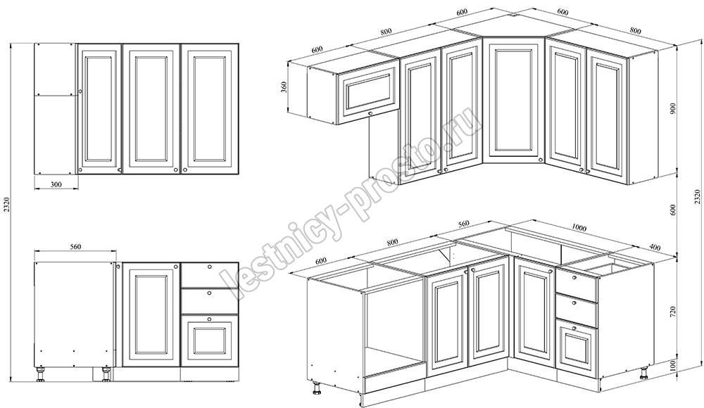 Угловой кухонный гарнитур из 100% массива сосны размером 2 на 1,4 и высотой 2,32 м (в данном проекте использованы высокие верхние ящики 90 см). Цвет на выбор - более 20 вариантов (при заказе кухни в нашем интернет магазине просьба указывать название цвета в комментариях).