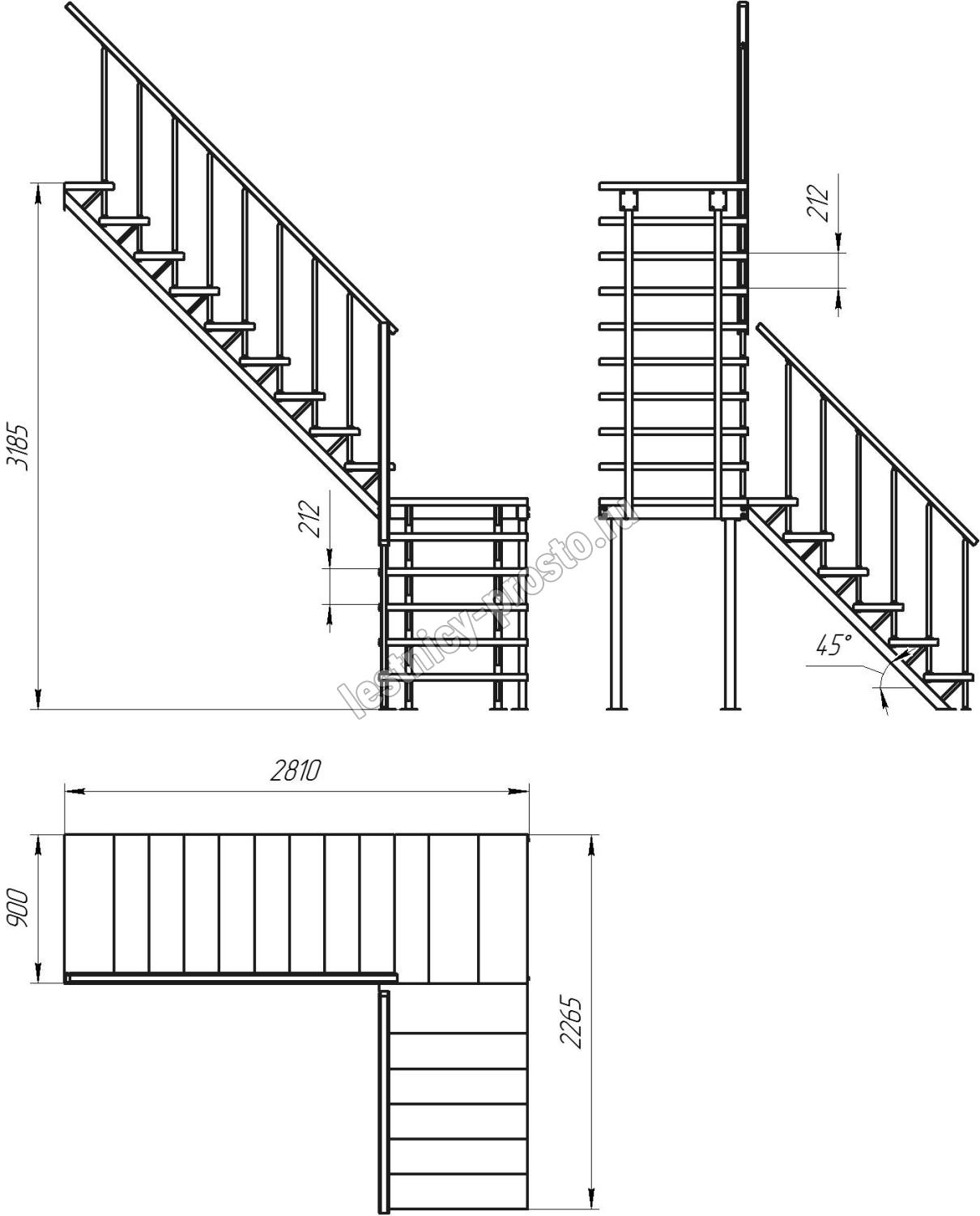 Универсальная лестница на металлическом каркасе с поворотной площадкой. Идеально дополнит любой интерьер, имеет современный вид и удобна в использовании. Монтаж осуществляется силами двух человек на объекте по указаниям, приведенным в паспорте на лестницу.