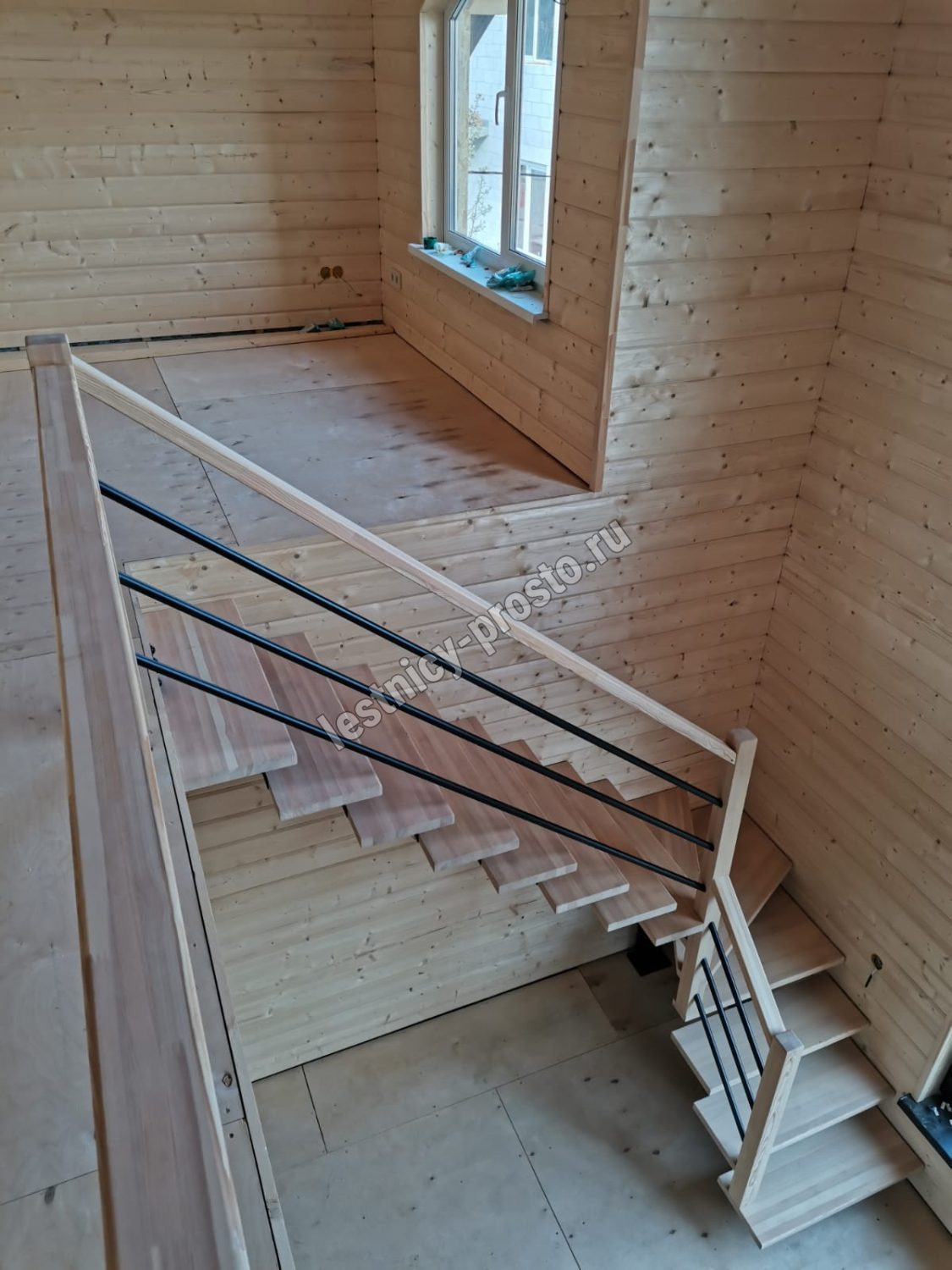 Поворот на 90° реализован посредством поворотных ступеней, высота поворота определяется параметрами вашего помещения и размерами проёма.