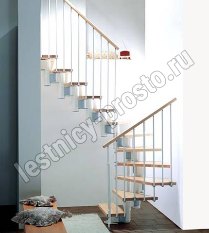При монтаже этой лестницы, возможно регулировать высоту и глубину шага, таким образом можно получить лестницу под высоты этажа в диапазоне 2250 - 3030 мм, кроме того, установив дополнительный комплект увеличения высоты, можно поднять высоту лестницы до 3730 мм. Ширина проступи регулируется при монтаже в пределах 180 - 220 мм. Каркас и стойки ограждения выполнены из пластифицированного металла. Уникальный модульный каркас позволяет собрать лестницу необходимой формы.