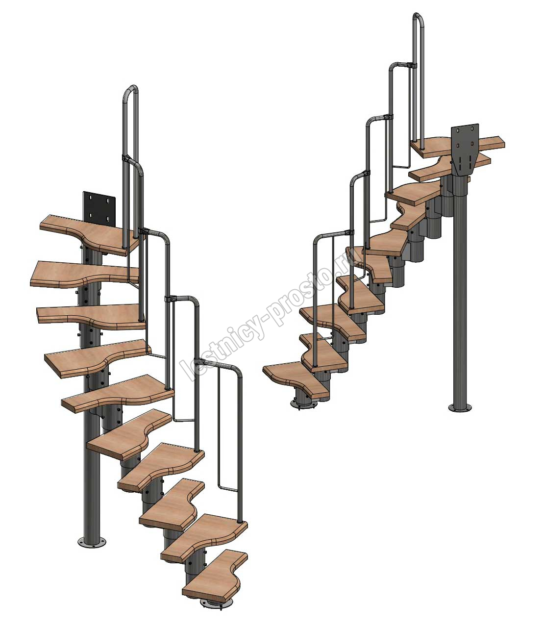 - Регулируемый по высоте в пределах 180-240 мм модуль. Большой диаметр и толщина металла деталей обеспечивают жесткость и прочность конструкции. Регулировка каждого модуля по высоте позволяет легко приспособить лестницу под ваше помещение.