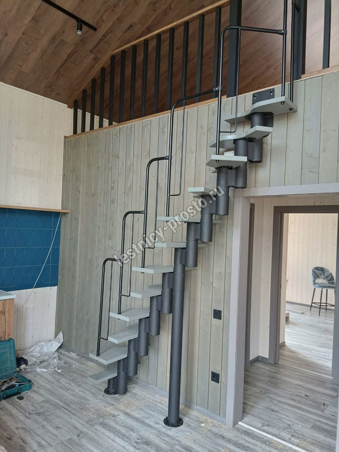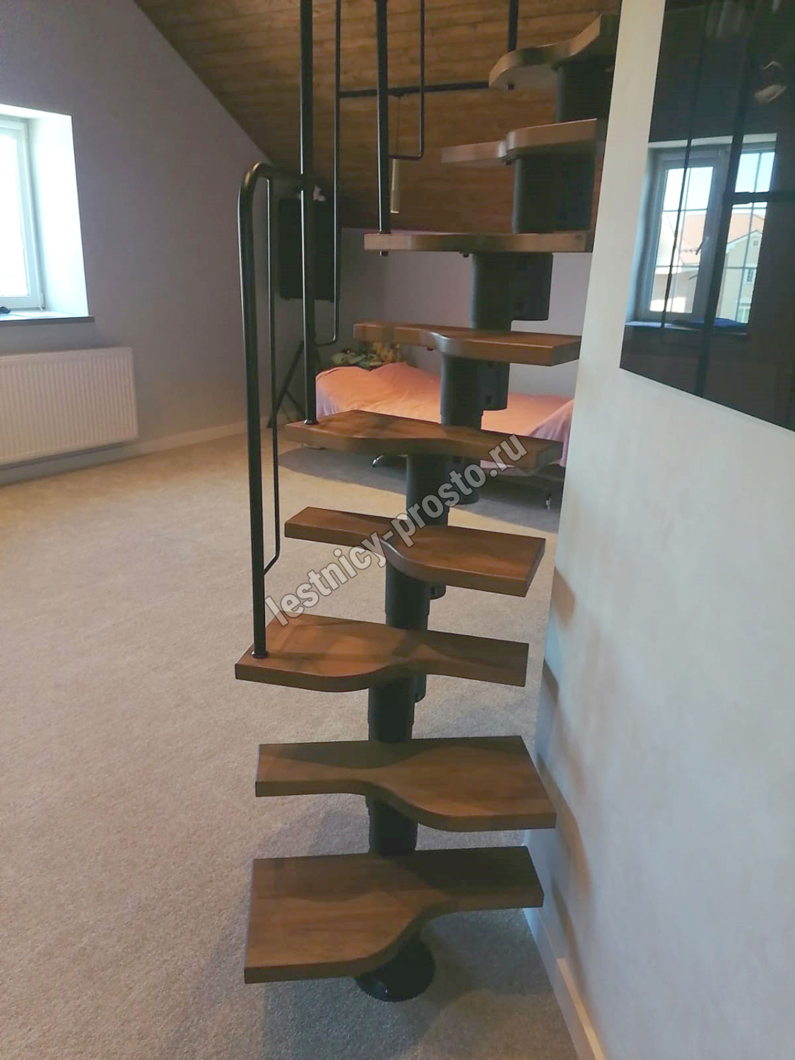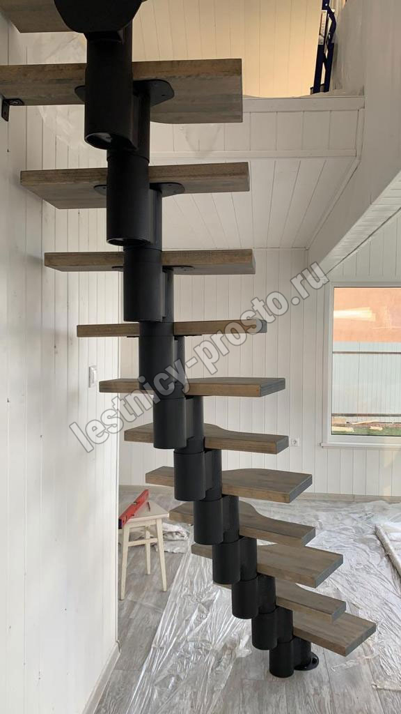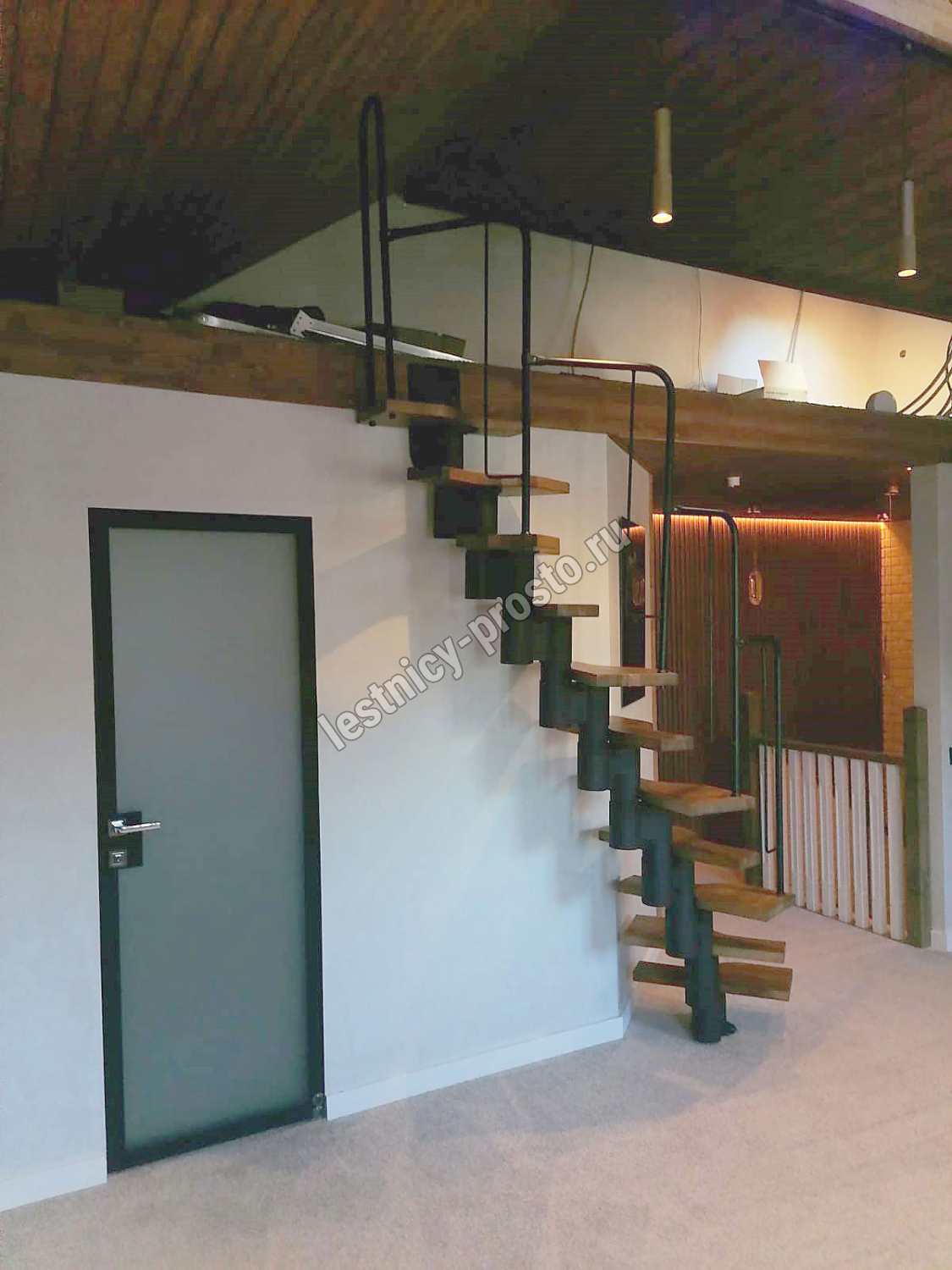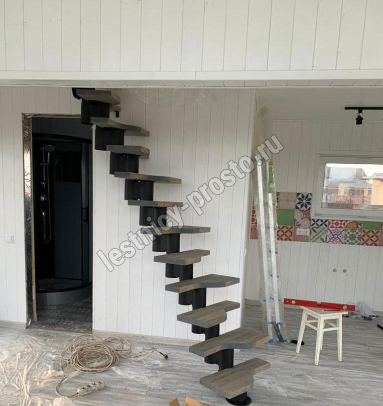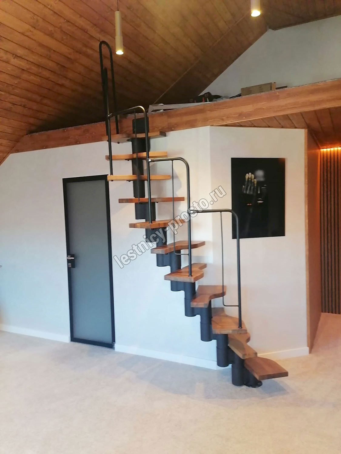 Лестница Prosto Urban Black гусиный шаг 600 мм, h180-264 см (10 ступеней), дуб