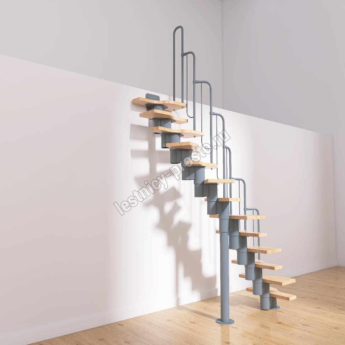 Лестница Prosto Urban Grey г-образная гусиный шаг 600 мм, h234-336 см (13 ступеней)