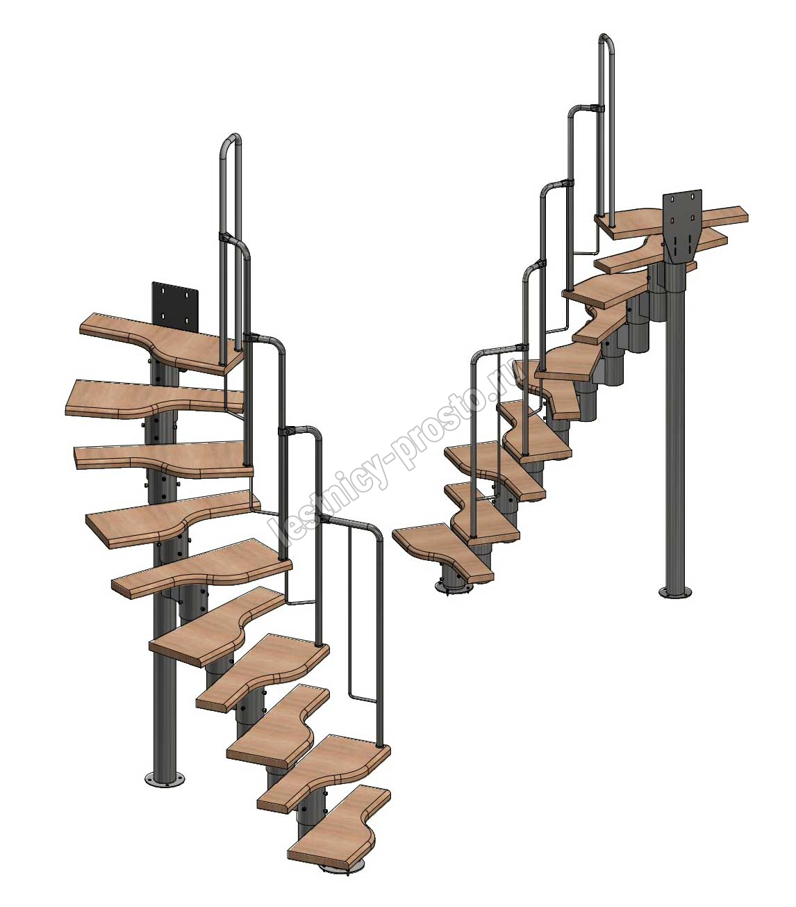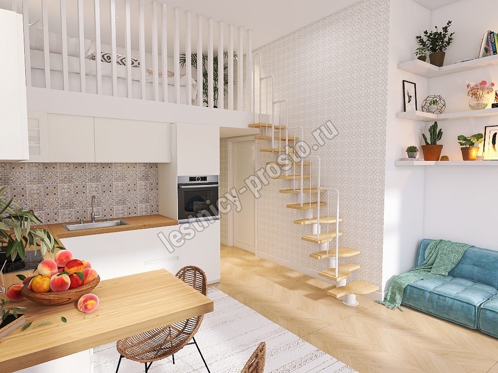 Лестница Prosto Urban White гусиный шаг 700 мм, h180-264 см (10 ступеней), дуб