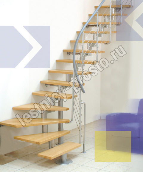 Модульная лестница DIXI PLUS серебро, светлый дуб