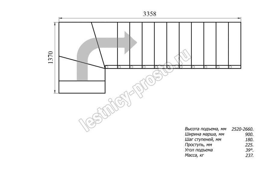 Высота лестницы 2520 - 2660 мм