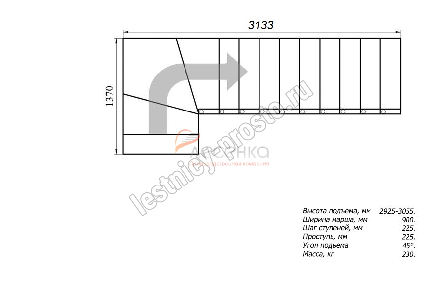 Модульная лестница Фаворит 225 2925-3055, Черный, Сосна, Крашеная, Без Ступений