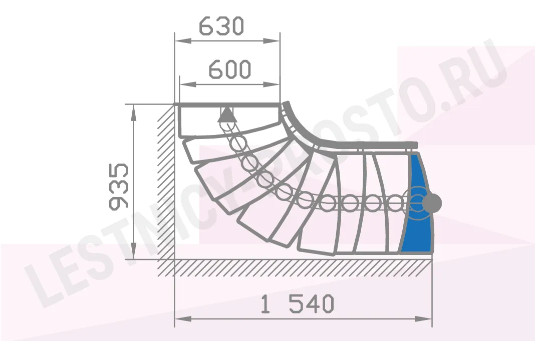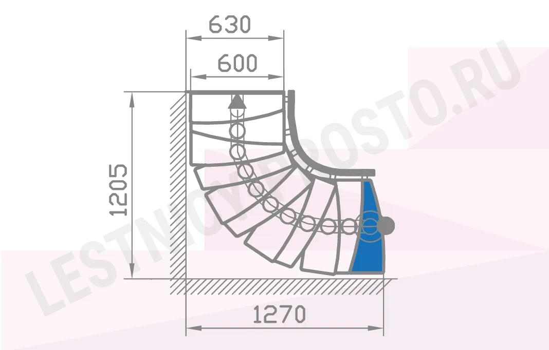 С помощью дополнительных секций(покупаются отдельно) можно увеличить высоту лестницы до 3750 мм. Модульный каркас лестницы позволяет собрать конструкцию, как прямую так и с необходимым небольшим поворотом в нужную сторону, благодаря чему эта модель идеально подходит для помещений с ограниченным пространством, где установка стандартных лестниц невозможна.