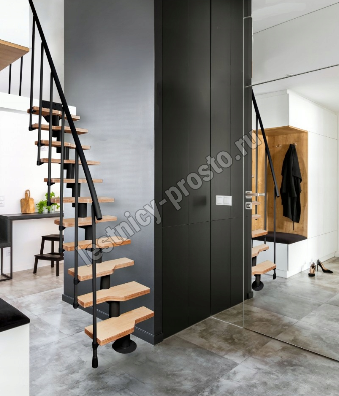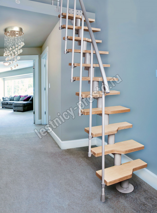 Модульная конструкция позволяет собрать лестницу наилучшим образом подходящую по форме параметрам вашего помещения.