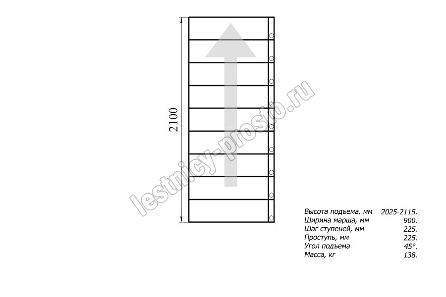 Высота лестницы 2025 - 2115 мм