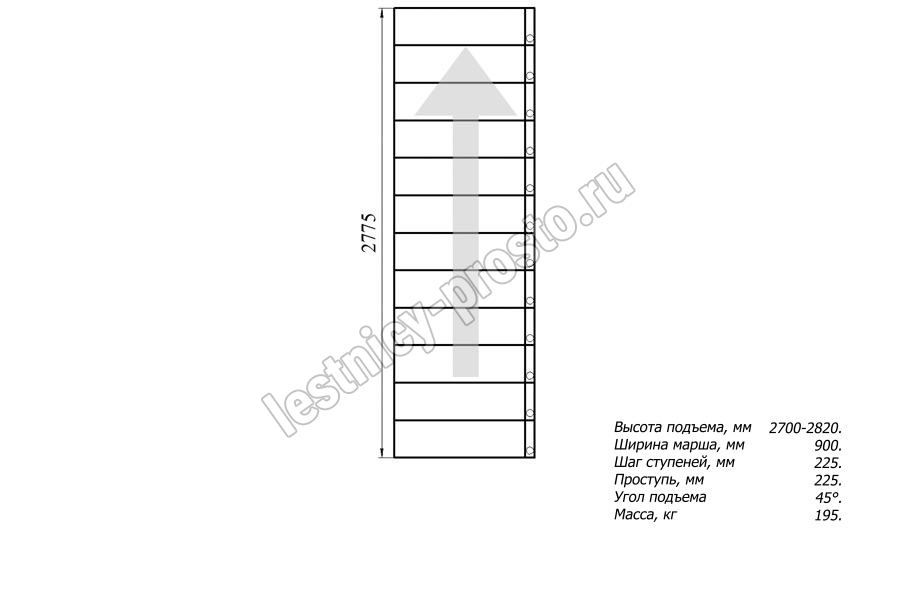 Модульная лестница Стандарт 2700-2820, Серый, Сосна, Крашеная