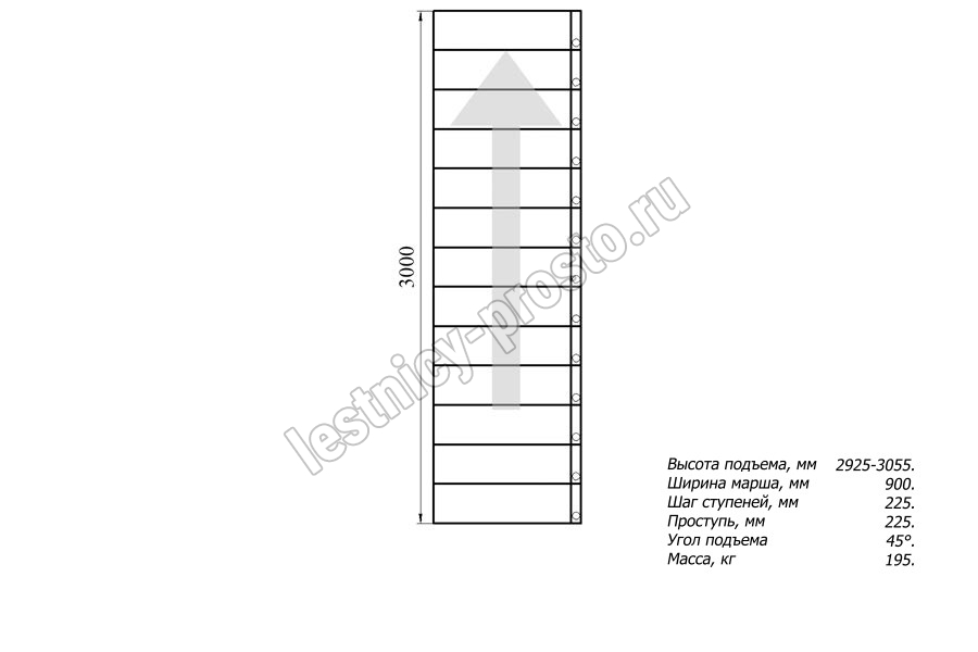 Модульная лестница Стандарт 2925-3055, Серый, Лиственница, Крашеная