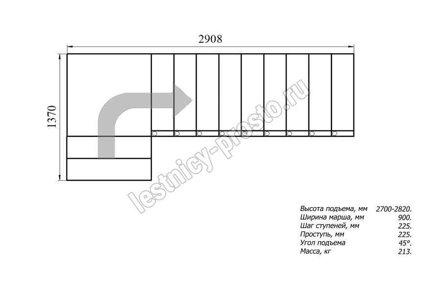Модульная лестница Статус 225 2700-2820, Черный, Сосна, Крашеная