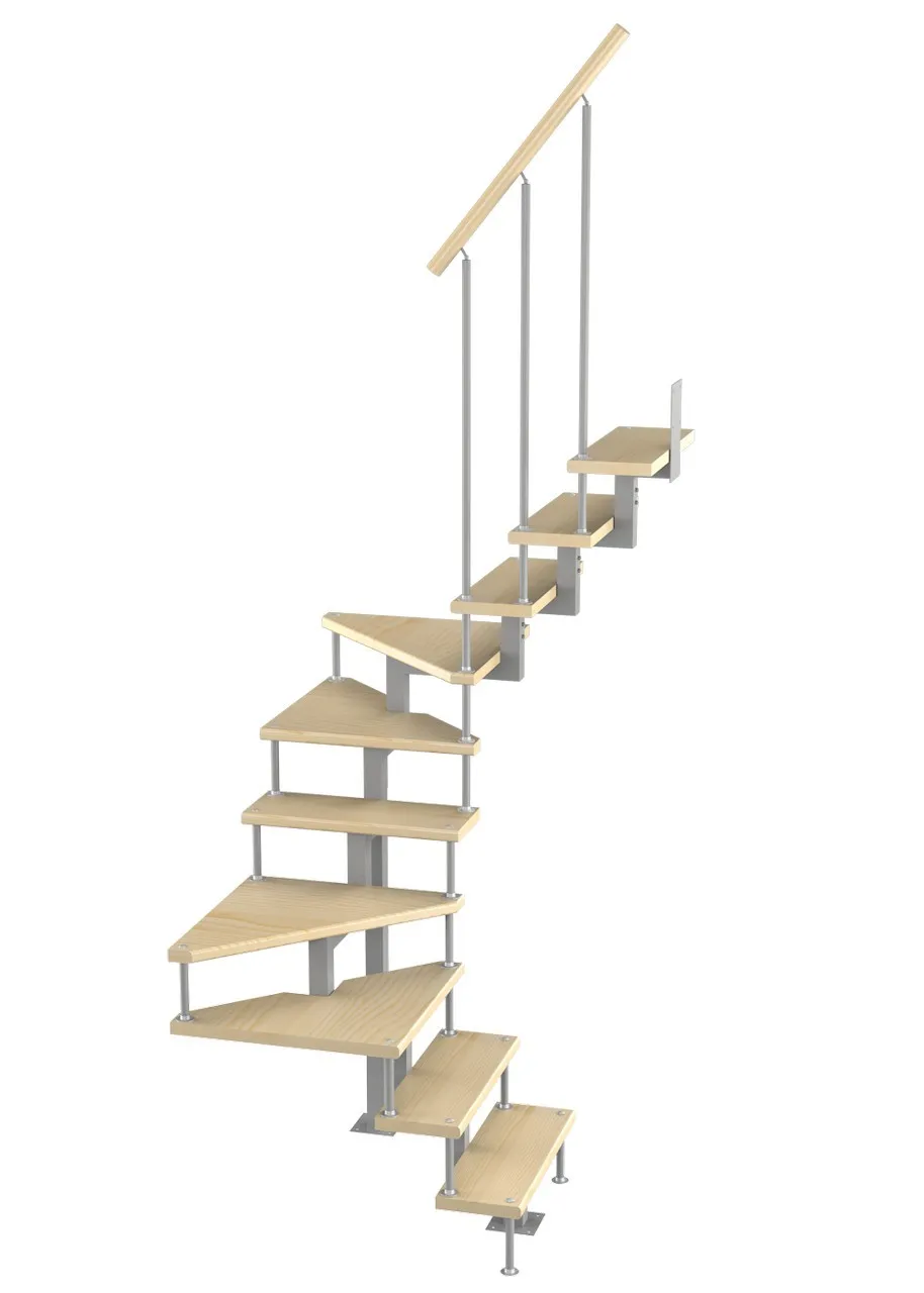 Модульная малогабаритная лестница Эксклюзив 2250-2475, Серый, Сосна, Нержавеющая сталь