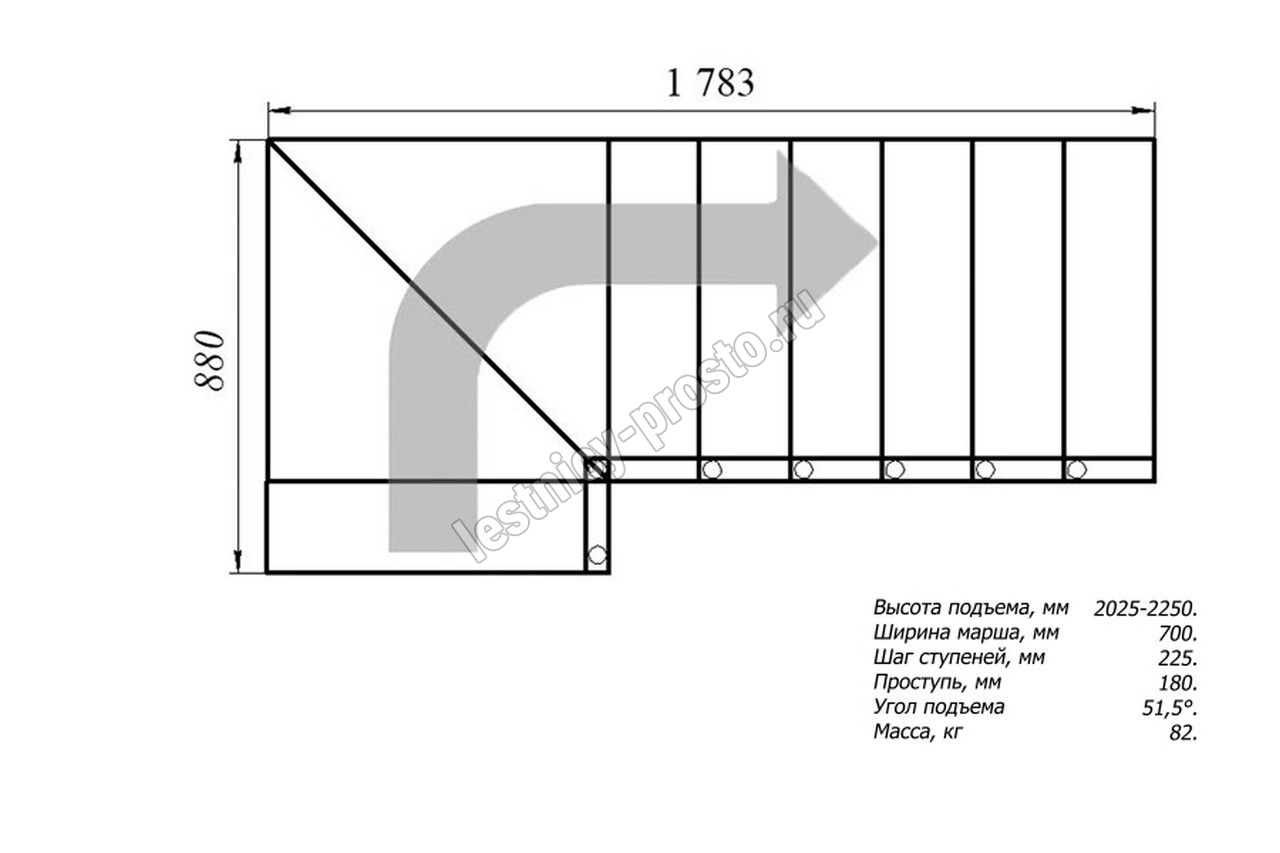 Высота лестницы 2025 - 2250 мм