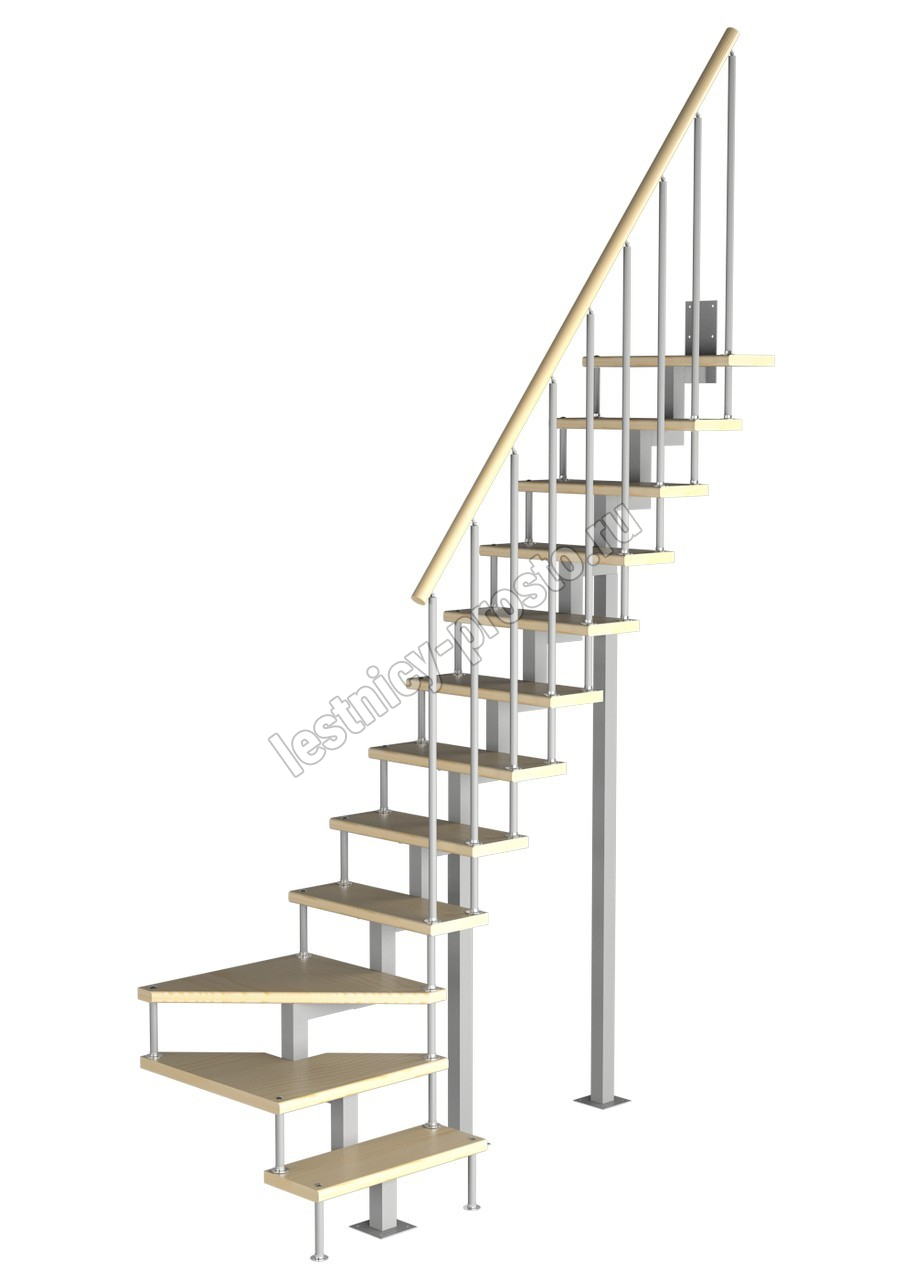 Модульная малогабаритная лестница Компакт 2700-2925, Серый, Сосна, Крашеная