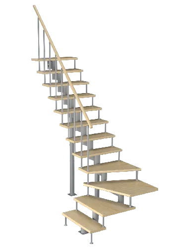 Модульная малогабаритная лестница Линия 2700-2925, Серый, Бук, Нержавеющая сталь