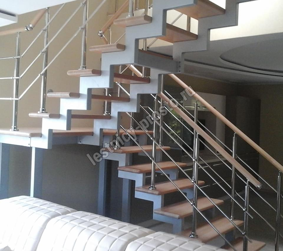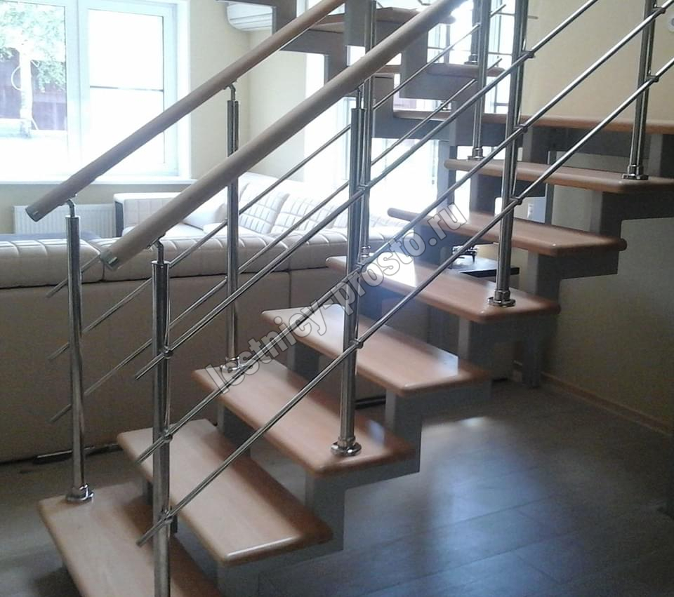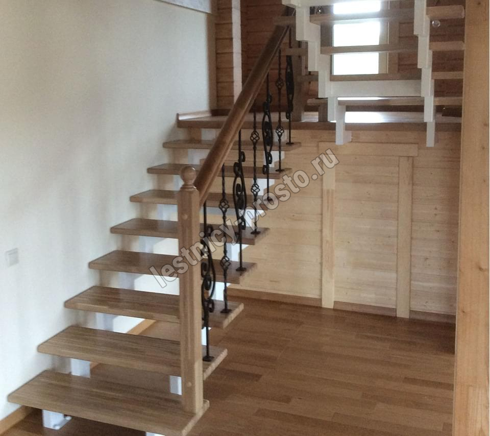 Ступени этого варианта лестницы изготовлены из сращенной сосны категории АВ, без какого-либо покрытия.