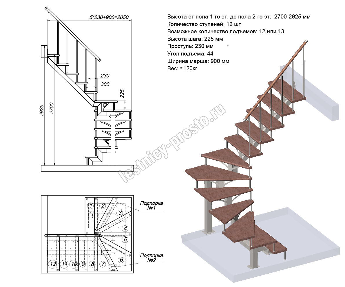 - таким образом вы получаете возможность увеличить общую высоту подъёма лестницы до необходимой.