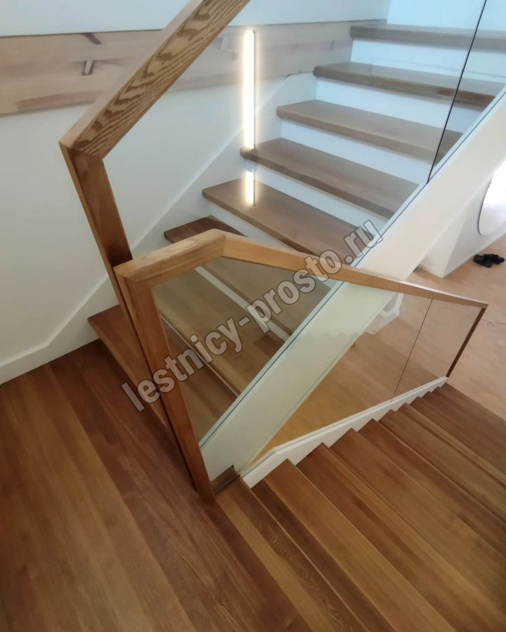Ступени и поручень выполнены из срощенного дуба категории АВ.