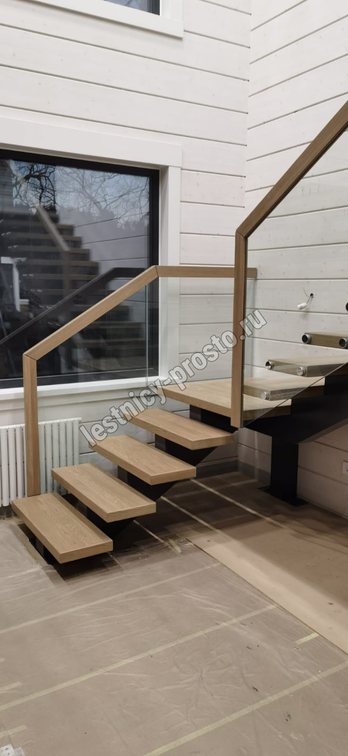 Стеклянная лестница из ясеня LP-2935 с металлическим каркасом