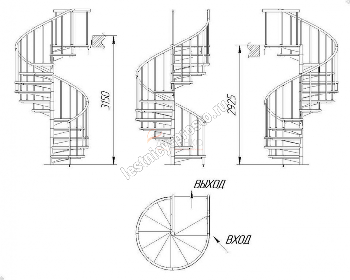Винтовая лестница ЛЕС-1,8 высота 2925-3150, Белый, Лиственница