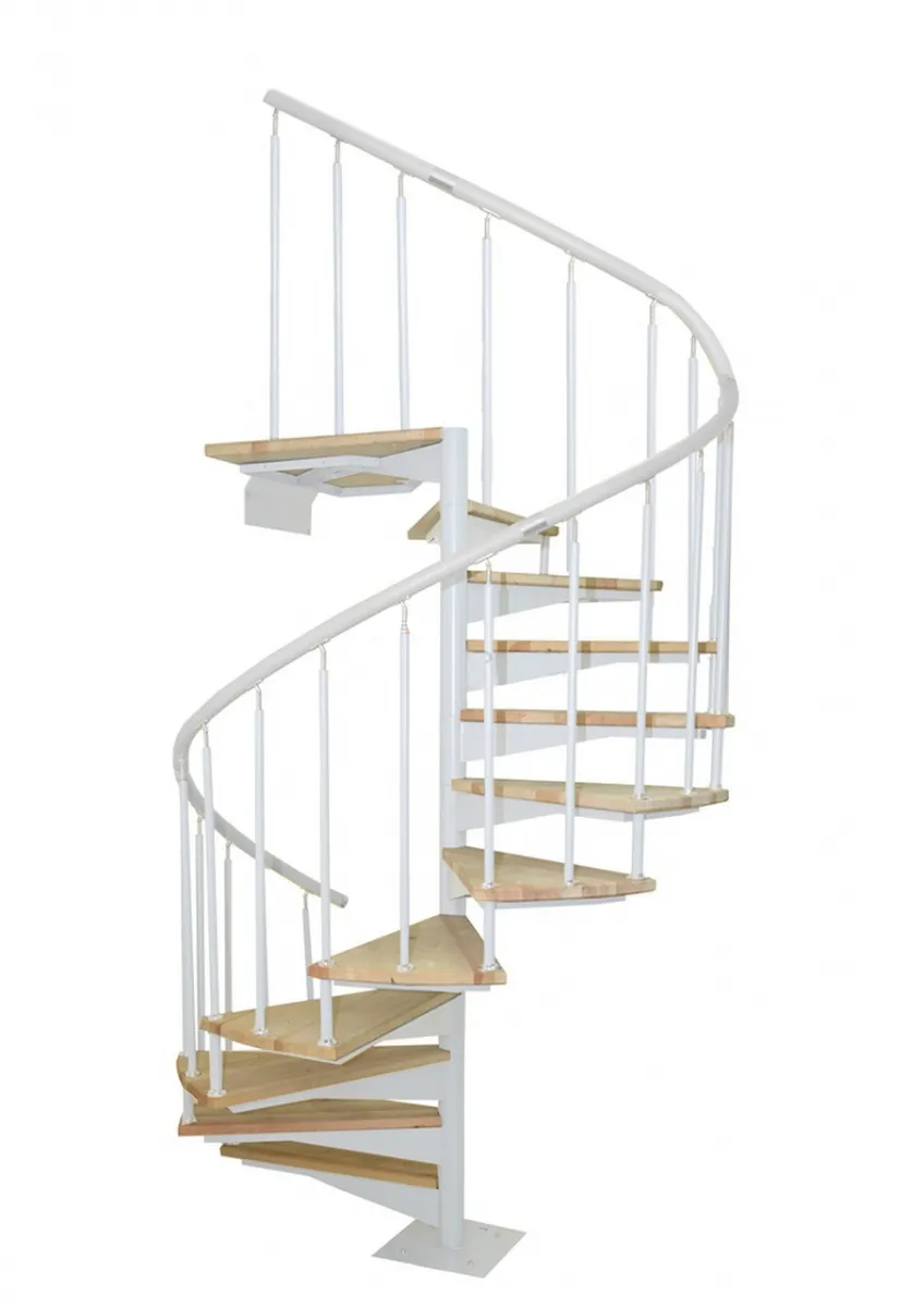 Новинка 2021 года !!! Не имеет аналогов в России по своему надежному конструктиву среди винтовых лестниц. Используемый материал - древесина шлифованная сосна , не окрашенная и металл покрытый порошковой краской. Поручень - пластиковый, уже изогнутый. Цвет поручня в ассортименте.