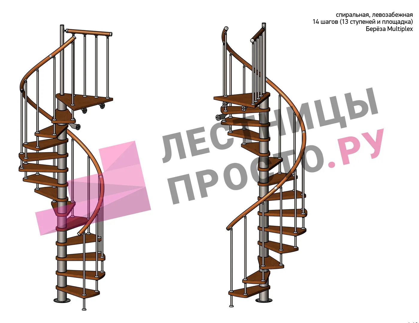 Винтовая лестница Prosto Spiral White D120см, h296.9-338.1 см