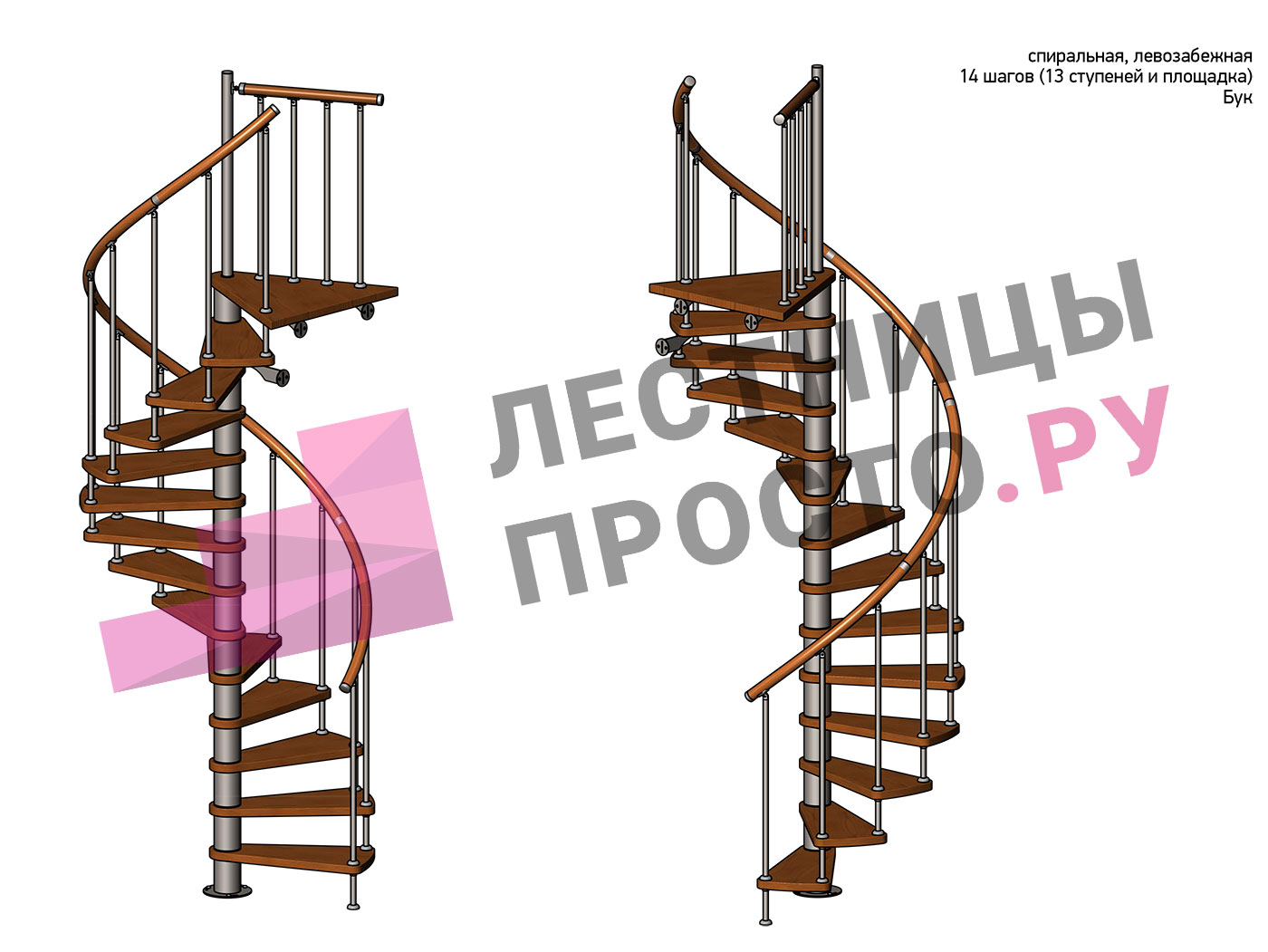 Винтовая лестница Prosto Spiral White D140см, h303.9-348,1 см, бук