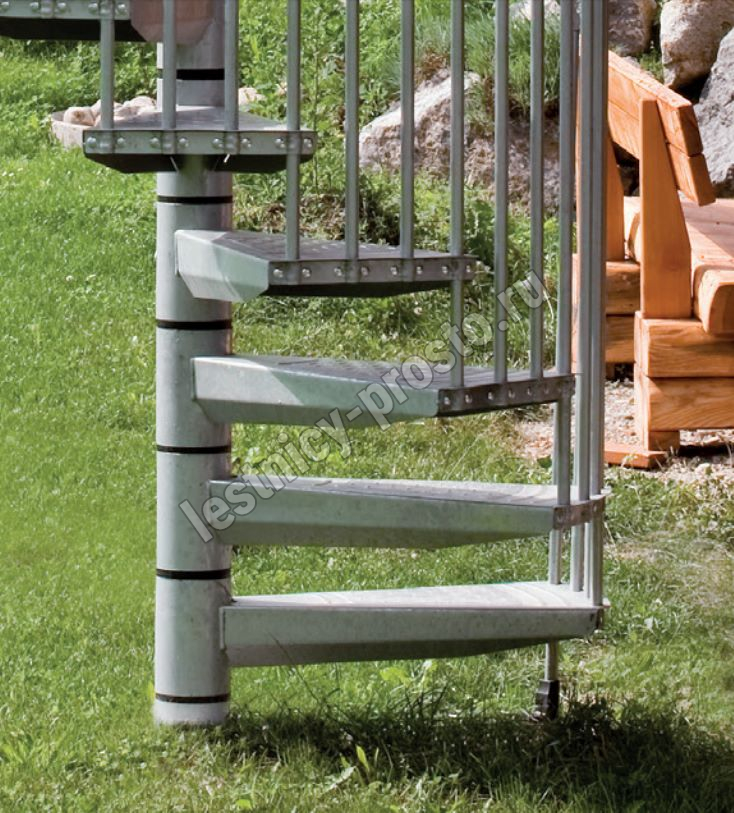 Благодаря возможности регулировать высоту шага с помощью пластиковых вставок (входят в базовый комплект), высоту лестницы можно варьировать в пределах от 2730 до 3000 мм. Ступени лестницы изготовлены со специальным, антискользящим рельефом.