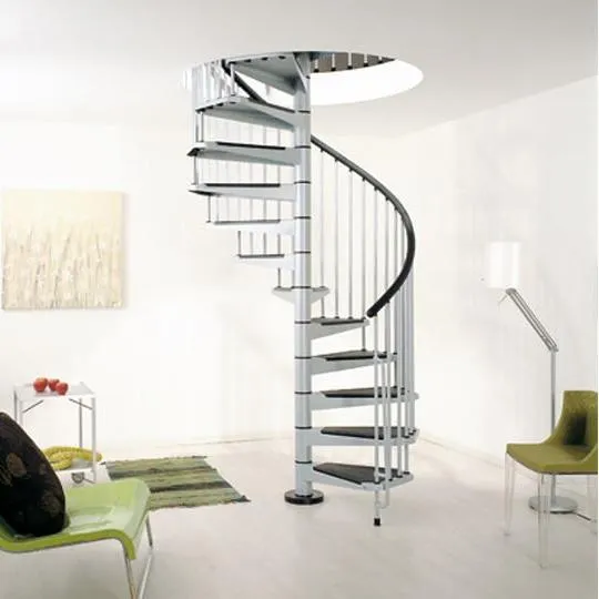 Винтовая лестница SPIRAL WOOD d140 см, серебро, лакированный дуб