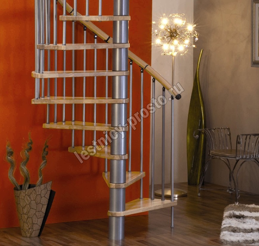 Лестница Spiral Decor d120 см, серебро, бук лакированный