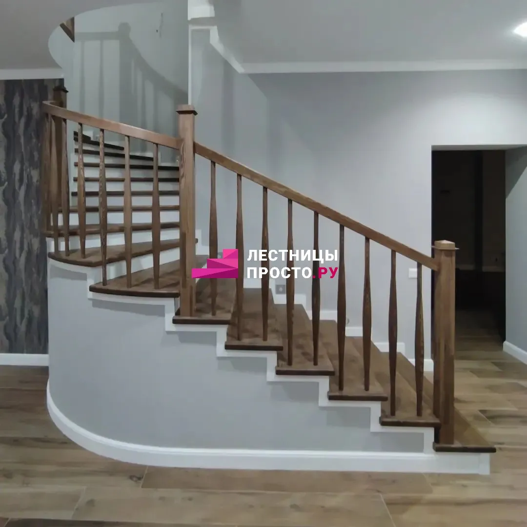 Подступенники, фальш-косоуры и сапожки (пристенной плинтус) выполнены из МДФ.